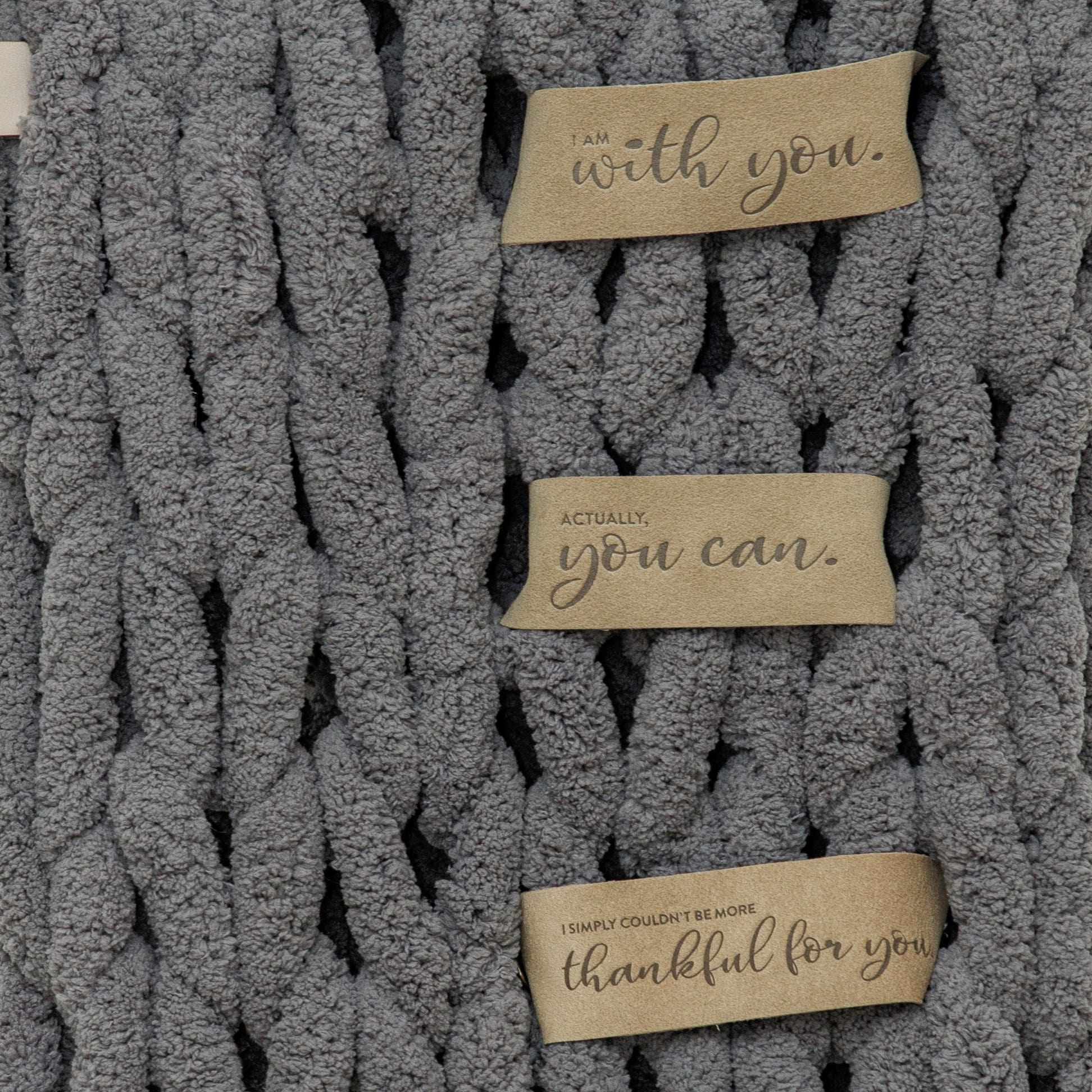 by adding our signature LoveSnaps. Featuring our favorite uplifting and affirming messages, the tags are hand-crafted from soft and pliable Ultrasuede®. Add your very own just-right mix of LoveSnaps to make your BIG LOViE blanket that much more meaningful for you or for someone you love.